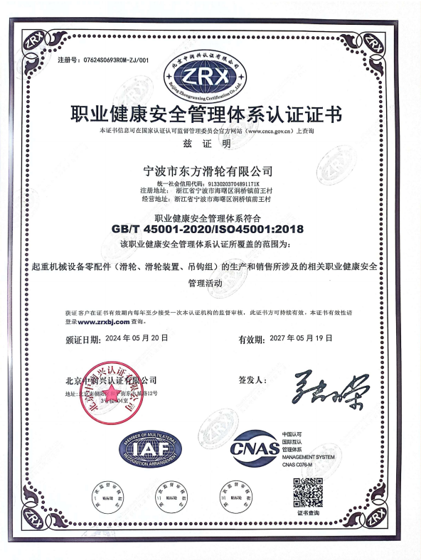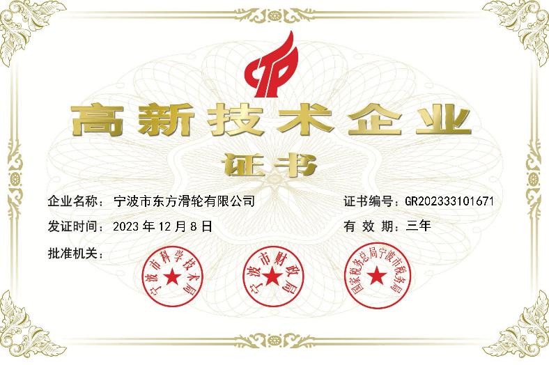 寧波市東方滑輪有限公司(簡(jiǎn)稱(chēng)寧波東方滑輪),成立于1998年,位于浙江省寧波市海曙區(qū),是一家專(zhuān)業(yè)從事鋼絲索相關(guān)滑輪傳動(dòng)裝置的開(kāi)發(fā)研究、創(chuàng)新設(shè)計(jì)及精密制造的廠(chǎng)家。2004年首批通過(guò)了ISO9001質(zhì)量管理體系認(rèn)證,2021年由中國(guó)船級(jí)社頒發(fā)了《CCS工廠(chǎng)認(rèn)可證書(shū)》,公司還擁有多項(xiàng)國(guó)際領(lǐng)先的發(fā)明和實(shí)用新型專(zhuān)利,參與起草國(guó)家機(jī)械部標(biāo)準(zhǔn)認(rèn)定《JB-T8398-1996雙幅板壓制滑輪》,現(xiàn)有員工逾百人。